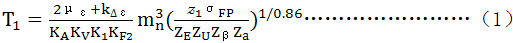 式(B2)與正文的公式(8)等效,其符号意義及取值同公式(8)。σHP及YF分别按大、小齒輪確定,σHP1/YF1和σHP2/YF2值,取其中的小值代入式(B2)。對於人字齒輪,(2με+k△ε)按單側齒寬計,算得的T1值爲單側齒寬的名義轉矩。