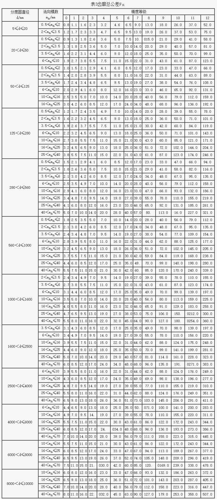 輪齒同側齒面偏差的定義和允許值輪齒同側齒面的精度允許值(二)(GB/T10095.1-2001)