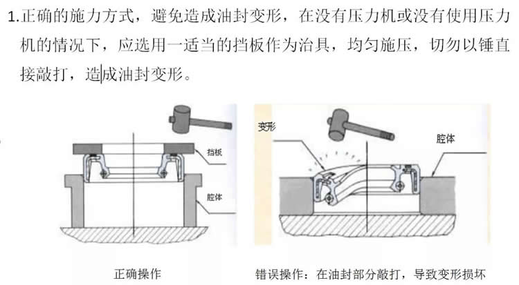 4.安裝油封時(shí) ,一定要使唇緣端朝向被密封的油液一側(cè),切忌反向裝配。