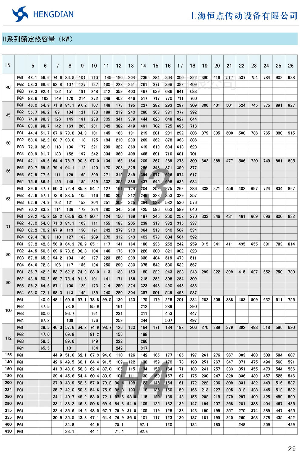 9 - B系列傳動能力表 10 - H系列額(é)定熱(rè)容量