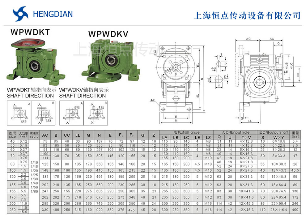 WPWDKT與WPWDKV萬能型蝸輪蝸杆減速機選型指南,WPWDKT與WPWDKV萬能型減速機軸輸入,軸輸出.機座号40到250,速比10到60.WPWDKT與WPWDKV減速機的外形安裝尺寸